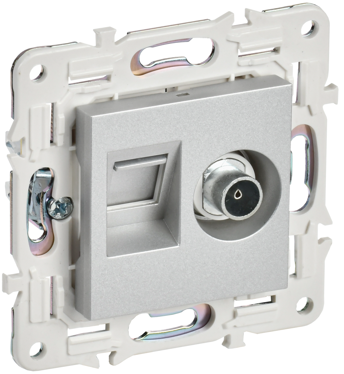 СКАНДИ Роз. СУ1 TV+RJ45 кат.5E SK-A14S серебр IEK - заказ